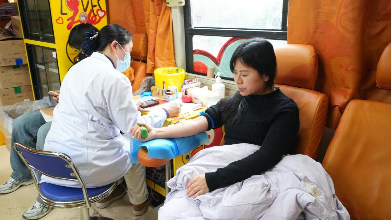1月4日中午,学校党委宣传部与校团委联合江西省血液中心于食堂前广场开展“条例护航 热血筑梦”无偿献血活动。尽管天气寒冷,活动仍吸引了不少师生前来,共有34人成功献血,献血量共计7700毫升。