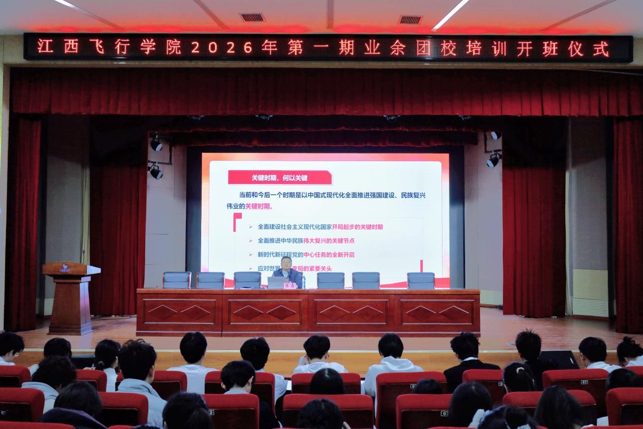 3月16日,学校2026年第一期业余团校开班仪式在航空大楼多功能报告厅顺利举行。校团委负责人陈磊、团委副书记衷欣,各二级学院团总支书记及365名业余团校培训班学员参加开班仪式。