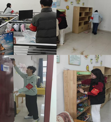 学院号召全体同学化身“校园安全守护者”,对教学楼、宿舍、食堂、操场等区域的关键设施进行拉网式、无死角排查。同学们自由组队,分工协作,以严谨认真的态度检查用电设施、消防器材、门窗护栏等,共发现并上报有效安全隐患67条。同时,志愿者们积极投入校园清扫,美化环境。此次活动将志愿服务从传统的环境卫生延伸至安全治理领域,极大地提升了学生的安全防范意识、风险排查能力和主人翁责任感,是雷锋精神在校园治理中的一次创新性实践。