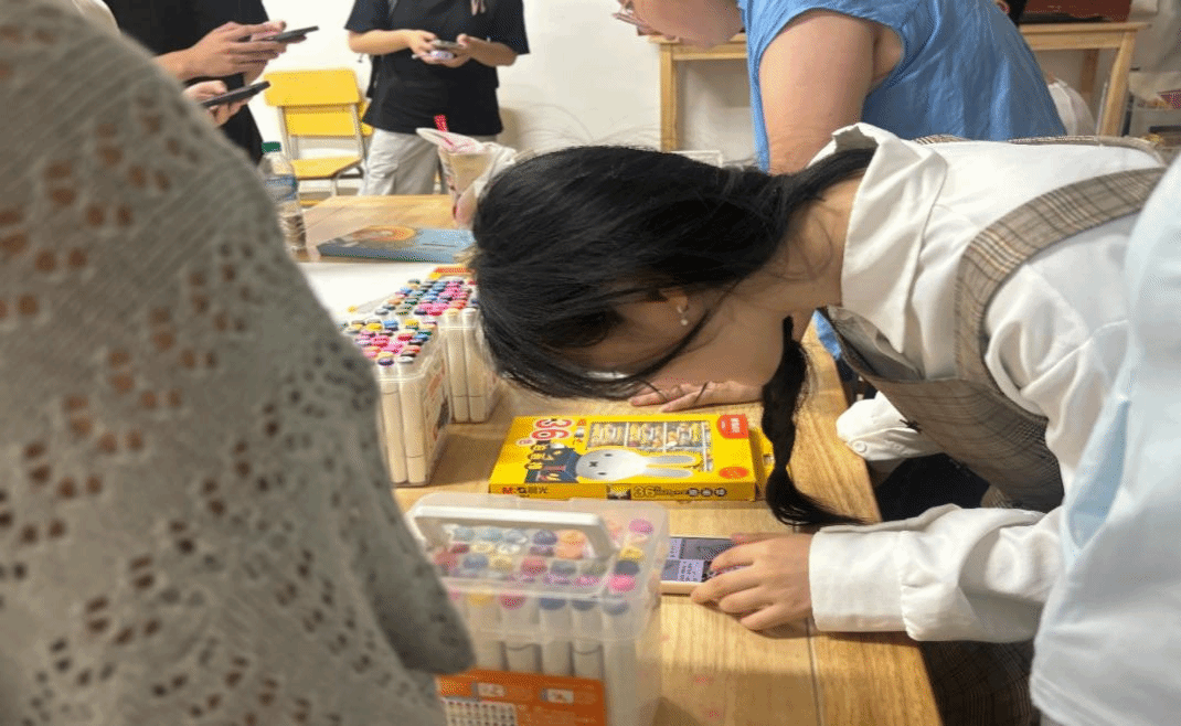 活动伊始,社团负责人首先介绍了本次活动的目的与流程。在宣讲环节中,主讲人围绕“石榴籽”的象征意义与中华民族共同体理念展开讲解,强调了民族团结在中华民族伟大复兴进程中的重要意义。讨论交流环节同学们踊跃分享对抗日战争精神的理解感悟,积极探讨如何通过艺术创作展现民族团结内涵,并在思想碰撞中凝聚创作思路。手抄报制作环节将现场气氛推向高潮,同学们分组协作,以画笔勾勒民族团结愿景,以文字抒发爱国情怀,最终完成数幅内容充实、版式新颖的主题作品。活动在全体成员与作品的合影中顺利落幕。