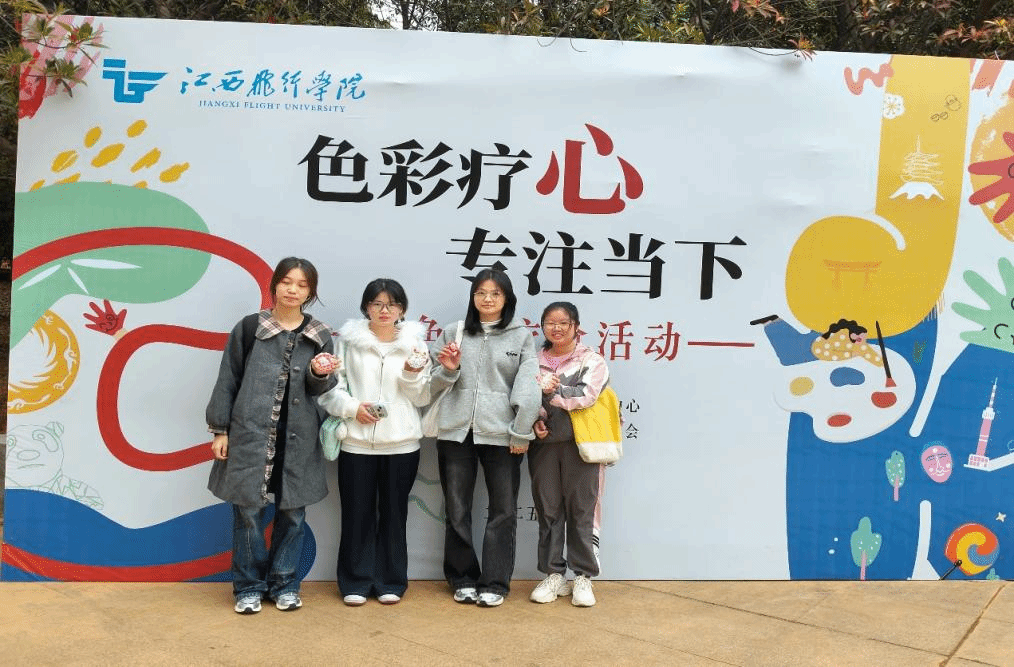 为丰富校园文化生活,关注学子心理健康,10月22日下午,江西飞行学院心理协会于新大学生活动中心二楼形体房成功举办了两场别开生面的“色彩疗心,专注当下”主题色彩疗愈活动。本次活动旨在通过一系列创意涂鸦与艺术创作,为全校师生提供一个释放压力、表达自我、促进联结的暖心平台。