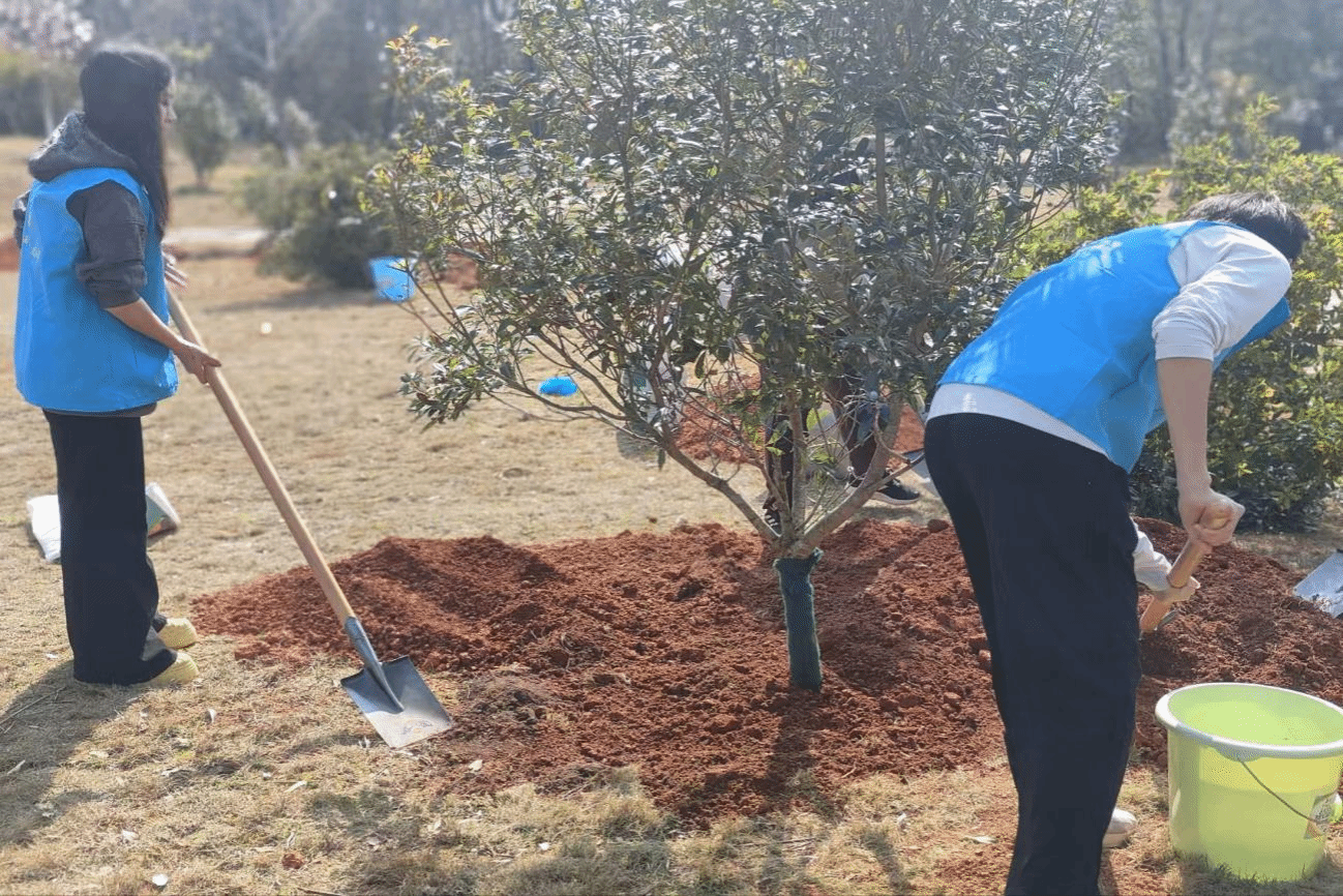 活动中,大家分工协作。有人挥锹挖坑,有人扶苗培土,有人提水浇灌,严格按照植树要求和标准,认真完成植树的每一个步骤,现场氛围热烈有序。
